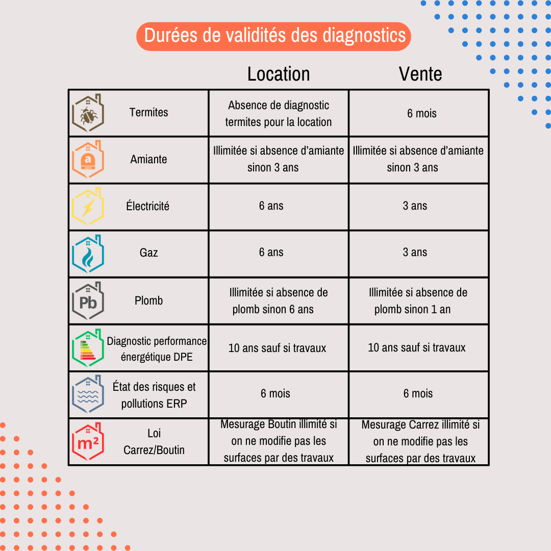 A cet égard, nous vous invitons à consulter le tableau dédié à la durée de validité de chaque diagnostic (vente et location) ci-dessous.